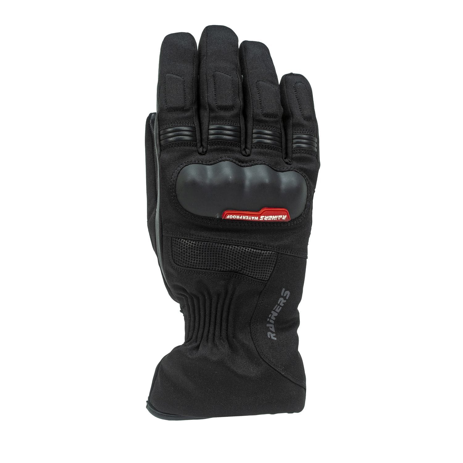 Guante touring, fabricado en piel y Poliéster, muy discreto, no excesivamente largo hacia la zona proximal, es táctil, con protecciones en las zonas más vulnerables ante posible impacto, es un guante impermeable y muy confortable debido a la combinación de tejidos, buen tacto y buena flexibilidad.